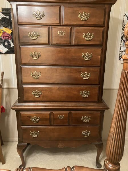 - Kincaid cherry highboy chest of drawers
