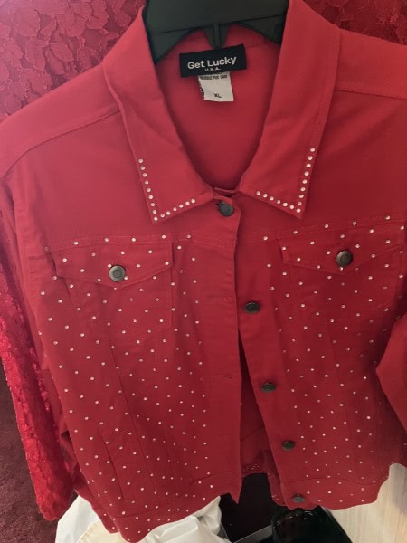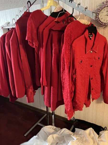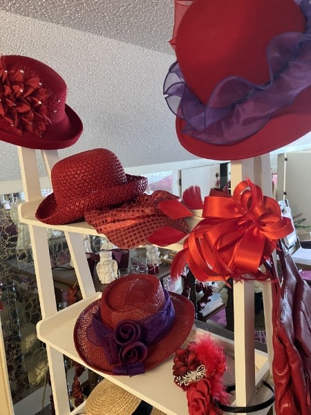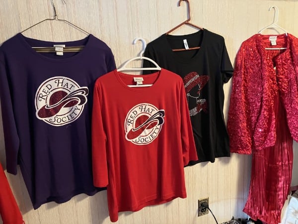 - SPECIALTY ITEMS: Ladies, we have the “Red Hat Society” accessories: shirts, hats, purses, shoes, scarves (shoes are size 7 and 7½)